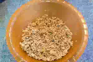 3. Мягкое сливочное масло перетираем с овсяными хлопьями таким образом, чтобы каждая крупинка получила свою маслянистую оболочку.
