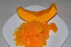 1. Для приготовления сладкой колбасы с тыквой и морковью нужно мягкое сливочное масло, поэтому достаньте его заранее из холодильника. Тыкву и морковь очистите от кожуры. Натрите на мелкой терке тыкву.