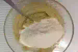 3. Далее добавляем соду, гашенную уксусом. Перемешиваем.