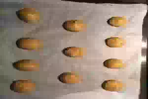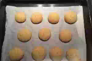 5. С помощью чайной ложки формируем из теста шарики, диаметром примерно 3 см, и выкладываем их на противень на небольшом расстоянии друг от друга. Сильно большой размер шариков не следует делать, т.к. они довольно хорошо увеличиваются в объеме при выпечке.