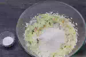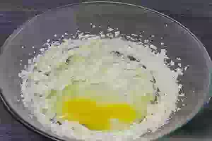 8. В несколько приёмов введите просеянную муку. Добавьте разрыхлитель.