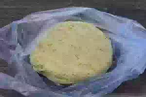 10. Тесто соберите, заверните в полиэтиленовый пакет и немного распластайте. Отправьте в холодильник на час, можно и больше.