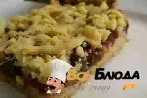 5. Достаем вторую часть теста и крошим при помощи терки сверху. Таким образом, мы "закроем" выпечку. Если вы сразу делаете печенье, то по такому же принципу. Отправляем форму в разогретую до 180 градусов духовку и выпекаем около 25 минут.