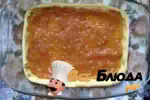 4. Берем одну часть теста и выкладываем как основу на дно формы. Делаем бортики, а в центр выкладываем варенье или повидло.