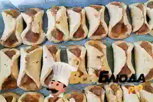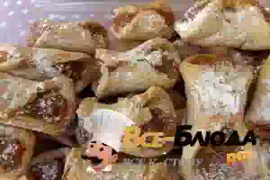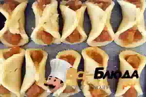 5. В центр каждого положите немного яблочной начинки, сверху тесто защипните. Не волнуйтесь, в процессе выпекания начинка вытекать не будет.