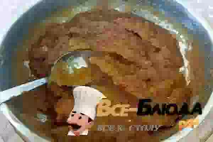 2. Выложите яблочное пюре на сковородку или в плоскую кастрюлю, добавьте сахар. Ужаривайте до момента, когда уйдет вода, и пюре загустеет. Не забывайте постоянно помешивать, чтобы яблочное пюре не пригорело.