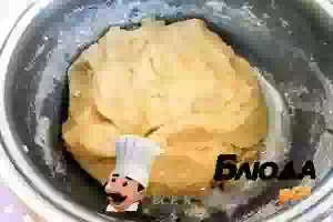 3. Для приготовления теста в миске подходящего размера смешайте сахар, масло и йогурт, добавьте гашенную лимонным соком соду. Замесите тесто, добавляя муку до состояния, когда тесто перестанет липнуть к ладоням.