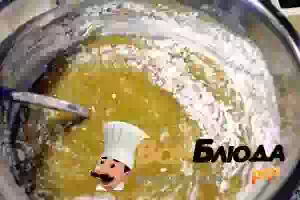 2. Добавляем сливочное масло, даем ему растопиться. Снимаем смесь с огня, обязательно даем ей остыть.