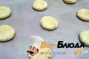 6. Выложить шарики на противень на небольшом расстоянии друг от друга, и слегка примять ладонью.