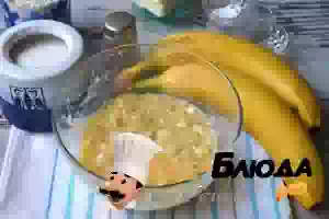 2. Разминаем вилкой бананы с сахаром в однородную массу.