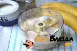5. Вливаем в блендер размягченные бананы и соду, гашенную уксусом. Взбиваем.