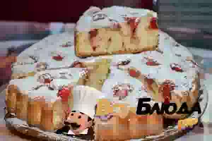 8. Готовый пирог на кефире с клубникой перенести вместе с формой на решетку, и когда пирог остынет, переложить на блюдо.