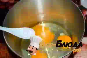 1. Яйца взбить вместе со щепоткой соли. В результате должна получиться светлая, однородная масса.