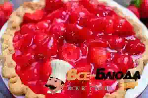 3. На заключительном шаге неспешно перемещаем клубничную начинку в цельную форму с нашим тестом, разравнивая поверхность от центра к периферии с помощью ложки, и выпекаем при средней температуре в течение 10 минут. В завершении остужаем пирог с клубникой до теплого состояния, раскладываем порциями по красивым тарелкам и щедро покрываем взбитыми сливками по желанию.