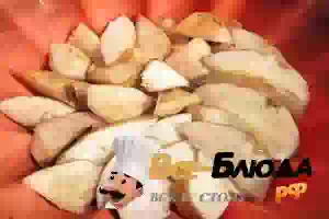 4. Айву тщательно вымыть, а затем нарезать тонкими пластинками. Многие любят нарезать фрукты в пирог большими кубиками. Но в случае с айвой это не совсем удачный вариант. Она не успеет пропечься и останется в пироге твердой. Поэтому лучше нарезать фрукт потоньше. Или же предварительно обжарить кубики айвы на сливочном масле.