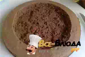 3. Вырезала и сняла верхний слой бисквита (потом поняла, что места будет мало для крема, всунула обратно в форму, и обкрошила края больше.