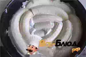 8. Готовым кремом намазала бисквит и разложила порезанные вдоль бананы (4 шт. пошло).