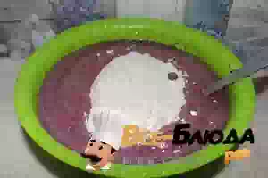 3. Небольшими порциями всыпать муку, замешивая тесто. Может потребоваться не вся мука, все зависит от густоты варенья. Оно должно получиться по консистенции, как на оладьи.