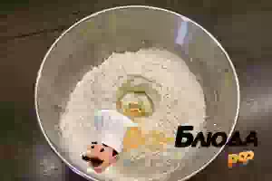 3. Достаем опару из тепла, добавляем к ней муку, яйцо, масло сливочное, соль. Хорошо вымешиваем и даем подняться в тепле 15 минут.