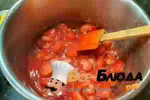 1. Начать лучше всего с начинки. Для этого клубнику порезать на небольшие кусочки, выложить в сотейник с толстым дном. Добавить сахар и кукурузных крахмал, все хорошо перемешать и варить на среднем огне, постоянно помешивая, до загустения примерно 5 минут. Снять клубничную начинку с огня, охладить при комнатной температуре примерно до 40-50С.