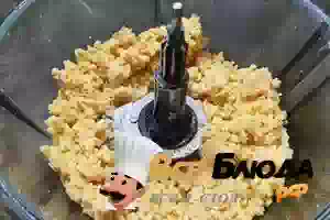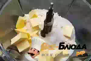 2. Теперь нужно приготовить тесто. Для этого просеянную муку перетереть с сахаром в крошку со сливочным маслом. Удобнее это сделать в кухонном комбайне.