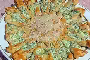 Пирог «Цветок» из готового слоеного теста с сыром и зеленью