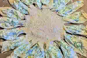 Пирог «Цветок» из готового слоеного теста с сыром и зеленью