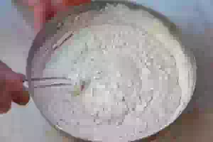 2. Муку смешать с содой (1 ч.л. соды можно заменить 1 ст.л. разрыхлителя) и примешать к остальным продуктам для теста. В конце влить растительное масло и размешать. Оставить миску с тестом при комнатной температуре минимум на 30 минут. За это тесто станет более пышным, тягучим, внешне напоминающим дрожжевое. Расстойка обязательна! В противном случае пирог получится клёклым.