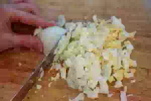 4. Яйца сварить вкрутую, остудить, очистить и крупно порубить. Добавить вареные яйца к черемше.