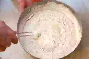 1. Замесить тесто для заливного пирога. В миску подходящего объема налить кефир добавить яйца и размешать их венчиком. Посолить и положить сахар. Муку смешать с содой (1 ч.л. соды можно заменить 1 ст.л. разрыхлителя) и примешать к остальным продуктам для теста. В конце добавить растительное масло. Оставить миску с тестом при комнатной температуре минимум на 30 минут. За это тесто станет более пышным, тягучим, внешне напоминающим дрожжевое. Расстойка обязательна! В противном случае пирог получится клёклым.