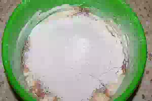 2. Добавить к полученной массе 160 г просеянной муки, чайную ложку соды, 3 чайные ложки какао-порошка.