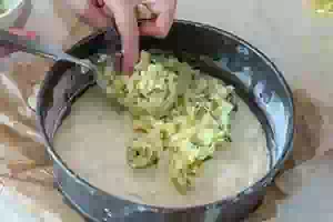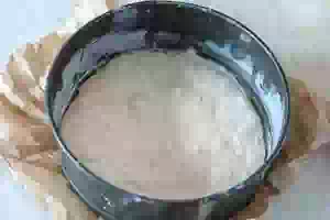 1. Замесить тесто. Можно приготовить тесто с вечера, убрать в холодильник, а утром дать ему согреться при комнатной температуре, а затем подойти еще раз. Подошедшее тесто разложить по формочкам. Формочки для теста подойдут любые. Предпочтительнее делать смаженки диаметром 15-16 см. Форму смазать маслом, припудрить мукой и руками, смазанными растительным маслом, распределить по дну формы тесто толщиной 1-1.5 см, формируя невысокие бортики. У меня форма диаметром почти 19 см, и из перечисленных в рецепте продуктов для теста получилось 4 смаженки. Дно формы застелите бумагой для выпечки, чтобы легче было доставать готовый пирог из формы.