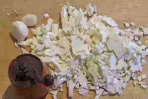 5. Смазываем форму сливочным маслом, густо посыпаем большей частью подсушенных в духовке или на сковороде хлебных крошек (или панировочных сухарей) и выкладываем картофельное пюре.