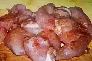 1. Мёрзлое масло покрошить в муку и быстро перетереть до состояния крошки, добавить соль, пудру и яйцо, влить немного ледяной воды, чтобы придать тесту необходимую пластичную консистенцию, слепить шарик. Сильно замесом не увлекаться. Убрать под плёнку и в холодильник на 2-3 часа, или на 20 минут в морозильник. 1.5 - 2 кг курицы разделать на порционные кусочки. Можно брать любые части птички. У меня опять случилось настроение к расчленёнке и я оттяпала от куры филе. Курицыны куски посолить, пересыпать тёртым мускатным орехом и кайенским перцем. Оставить немного полежать при комнатной температуре.