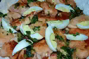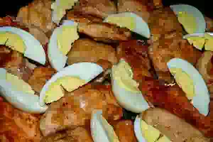 3. Художественно накидать ломтики сваренных вкрутую куриных яиц.