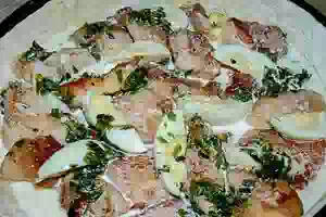 4. Небольшой пучок петрушки нашинковать и проварить в 100 мл молока в течение 3 минут. Полить этим курицу.