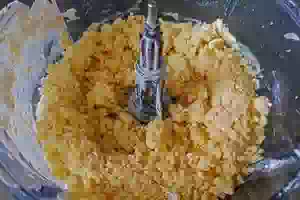 2. Добавить желтки (или 1 крупное яйцо) и замесить однородное тесто. Если Вы готовите в комбайне, то эти этапы можно совместить и пробить сразу все ингредиенты.