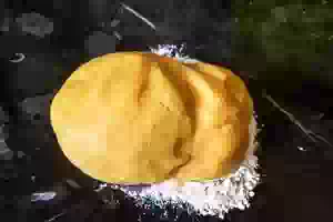 3. Сформировать из полученного теста шар и разделить на 2 неравные части - одну побольше и вторую поменьше.