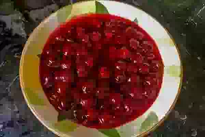 8. Готовую вишневую начинку перелить на тарелку и дать ей немного остыть.