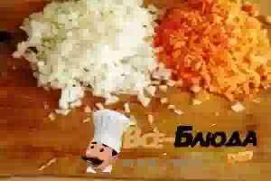 3. Мелко режем лук и морковь.