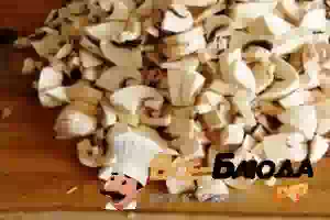 4. Некрупно нарезаем грибы, сыр натираем на крупной терке.