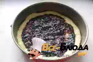 6. Смазываем форму для выпечки маслом и формируем из 2/3 теста дно с небольшими бортиками. Выкладываем равномерно джем или густое варенье.
