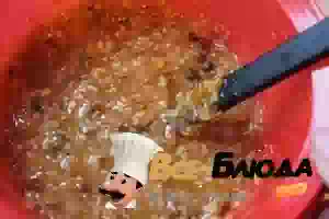 5. Для начинки смешайте в миске варенье с дроблеными орехами, сырым куриным белком и рубленным изюмом. По желанию вы можете добавить немного сахарного песка, если считаете, что масса получилась недостаточно сладкой.