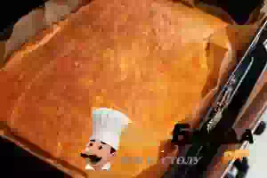 4. Раскатайте одну из частей в тонкий пласт. Выложите его в форму для запекания, которую следует заранее застелить пергаментом, чтобы торт не прилип.