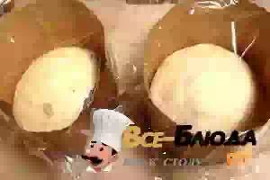 4. Затем разделите тесто на части и разложите по формам. Духовку разогрейте до 200 градусов.
