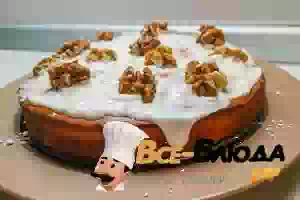 8. И украсить грецкими орехами. Готовый пирог на сметане с грецкими орехами разрезать на небольшие кусочки и подать к столу.