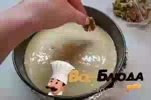 4. Форму снаружи обернуть фольгой, подогнуть края книзу. Вылить тесто в форму для выпекания.
