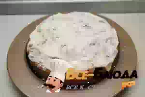 6. Поставить пирог в разогретую до 180С духовку примерно на 20 минут. Выпекать до румяности. Время от времени проверяйте готовность с помощью деревянной зубочистки. Готовый пирог остудить: сначала приоткрыть дверцу духовки, затем достать и оставить в форме полного остывания.