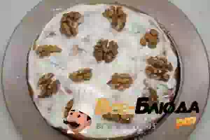 5. Очищенные грецкие орехи равномерно распределить по тесту.
