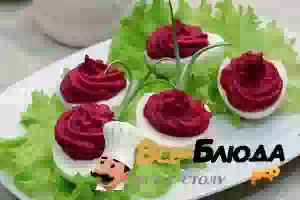 Яйца, фаршированные селедкой и свеклой